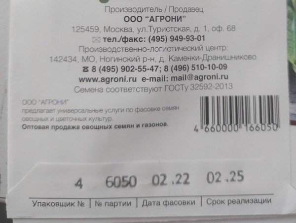 ВСЕ СЕМЕНА ФИРМЫ AGRONI СО СВЕЖИМ СРОКОМ ГОДНОСТИ!